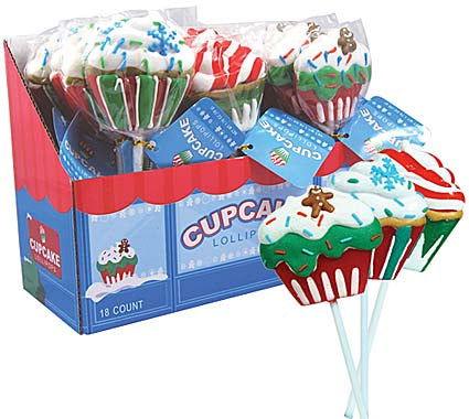 Christmas Cupcake Lollipops are a new addition to our lineup this holiday season. These big, 1.76-ounce lollipops are brightly colored and decorated with icing.